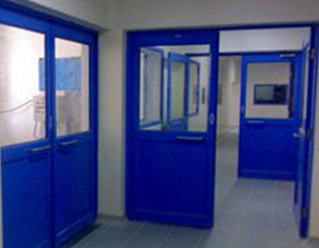 Door Shutters : 0.8 mm thick GI / SS, formed to provide a 45 mm Thick Fully Flush, Double Skin Shell with Internal reinforcements to ensure rigidity.
